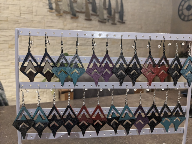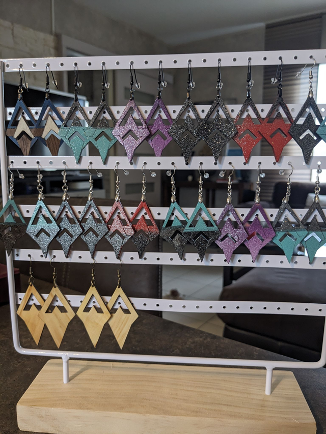 Ajoutez une touche de couleur à votre style avec notre paire de boucles d'oreilles 'Triangle' en CP Bouleau. Mesurant 30mm de large et 45mm de haut avec une épaisseur de 2mm, ces boucles d'oreilles sont peintes à la main avec des finitions toutes couleurs, et sont recouvertes d'un vernis brillant. Idéales pour un look artistique et élégant.