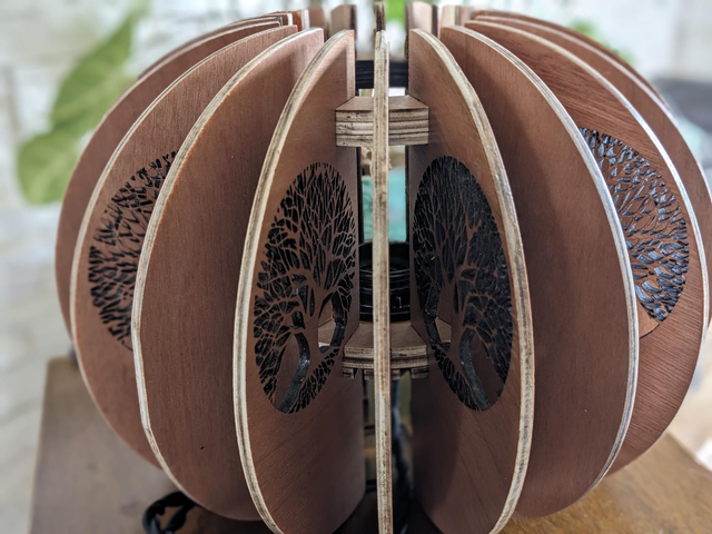 Découvrez la lampe de chevet, modèle Arbre de Vie, une pièce unique fabriquée en CP Okoumé avec une épaisseur de 5mm et une finition en vernis satin. Cette lampe est ornée d'une gravure arbre de vie pour un style distinctif. Elle inclut une ampoule avec un culot e27 et dispose d'un cordon tressé noir, d'un interrupteur et d'une prise, alliant esthétique et fonctionnalité.