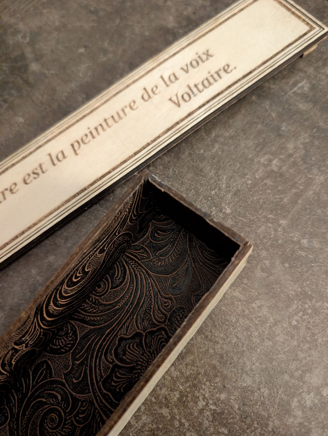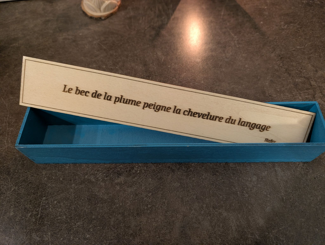 Découvrez ces magnifiques boîtes à stylos, décorées avec des citations inspirantes de célèbres auteurs français. Fabriquées avec soin, elles offrent une protection élégante pour vos stylos, tout en ajoutant une touche littéraire à votre bureau. Un cadeau parfait pour les amateurs d'écriture ou de littérature. Chaque boîte est unique par sa citation et son design.