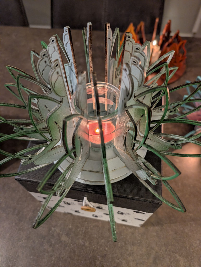 Découvrez notre photophore inspiré du lotus en bois (peuplier 3mm bi couleur), une pièce unique façonnée avec soin pour apporter une touche de sérénité à votre intérieur. Son design inspiré du lotus, agrémenté de silhouettes méditatives finement découpées, diffuse une lumière douce et apaisante, idéale pour créer une atmosphère zen et chaleureuse dans votre salon, chambre ou espace de méditation. Peut-être disponible sur commande en plusieurs tailles et finitions de bois naturel, cette lampe éco-responsable s'intègre parfaitement à tous styles de décoration. Offrez-vous un éclairage raffiné et une décoration originale qui invite à la détente.